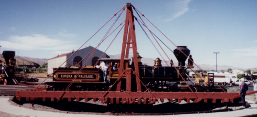 Virginia & Truckee No. 18 "DAYTON" under the bright autumn sunshine's, one of the stars at the Nevada State Railroad Museum. This Central Pacific built 4-4-0, an "American" type locomotive was pulled from inside display and placed outside on Sunday (10-26-97) during the final day of the 1997 V&T Symposium. |