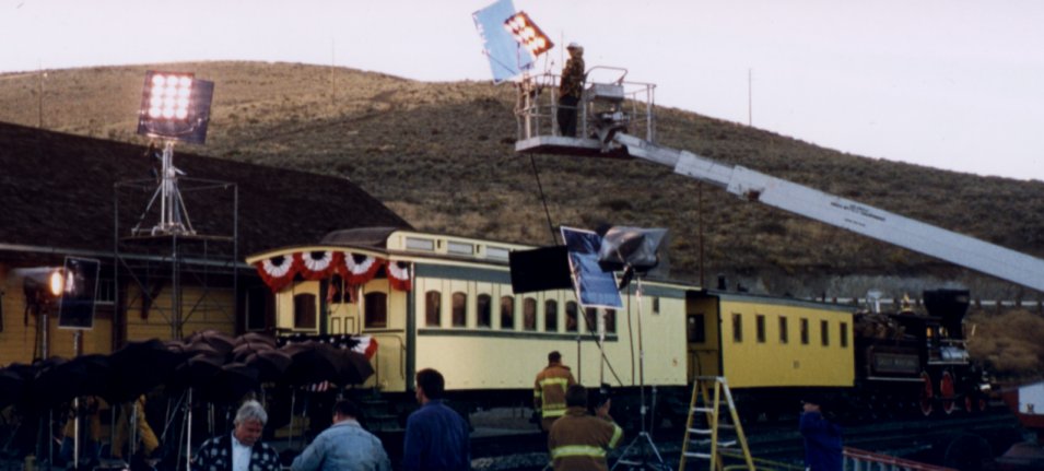 In this view the No. 25 powers its’ historic consist past the "Wig Wag" signals. Train consist on 1997 Symposium weekend included V&T caboose/coach No. 8, V&T coach No. 10 and on the rear Nevada Copper Belt Caboose No. 3, shades of the past! |