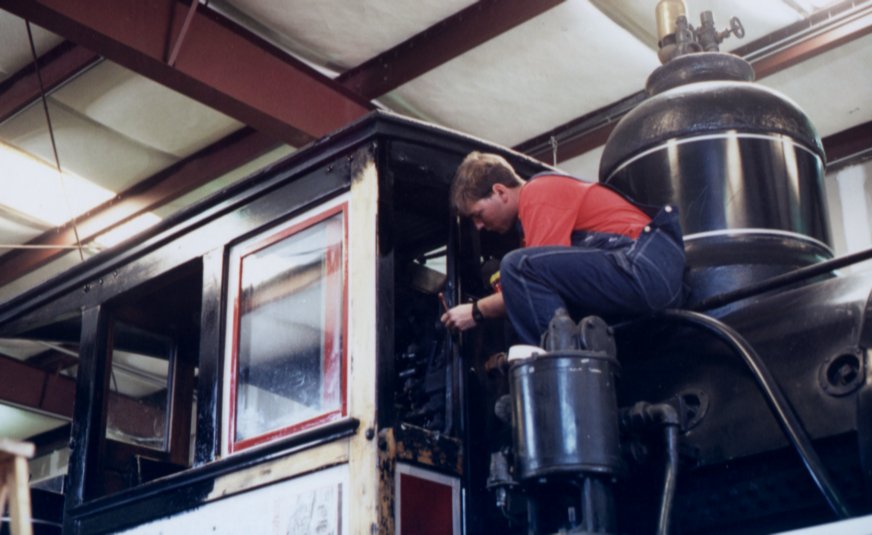 During the 1997 V&T Symposium V&T No. 27 was pulled from its spot in the NSRM restoration shops so many could see the progress taking place on this project. The restoration has since been completed, and the engine is now on display in the museum. |